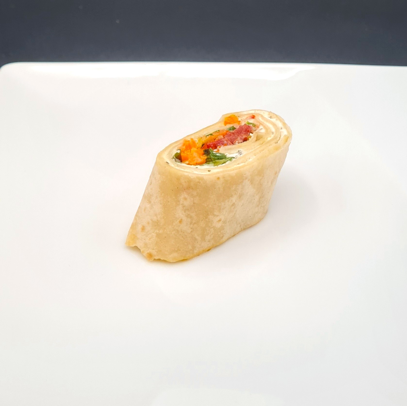 Wraps, carotte orange et jaune, mascarpone, fromage frais, aneth, tomate confite, jeunes pousses.